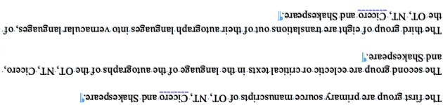 Origen’s Hexapla, Samaritan Pentateuch, NA28, UBS5, Cicero (Harv Class), Shakespeare’s First Folio (1623)